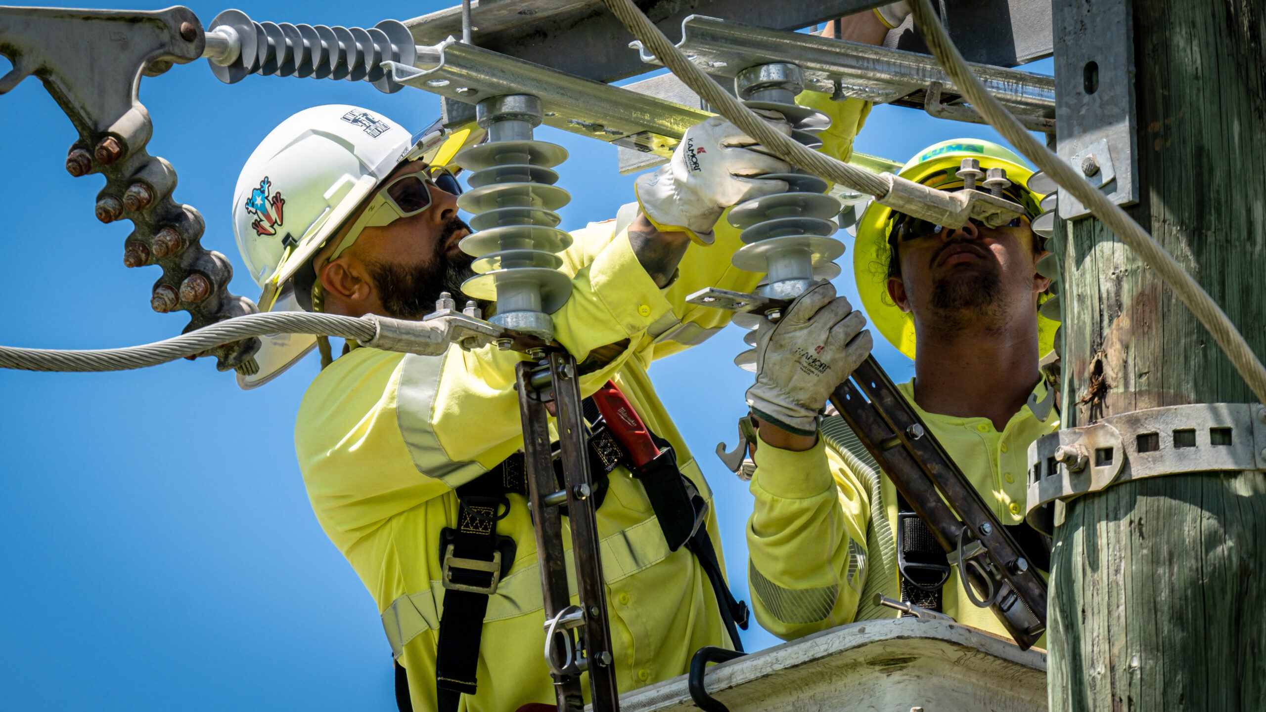 La línea de transmisión comprende aproximadamente 27,000 pies e incluye 223 postes de transmisión y distribución. Actualmente, las brigadas trabajan en nueve de estos postes, incluyendo áreas de difícil acceso que requieren equipo especializado para completar las labores de manera segura.